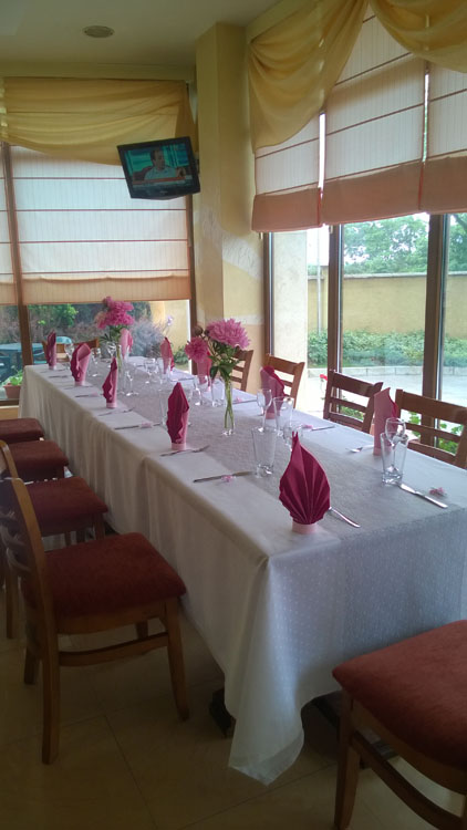 Ресторантът към хотела разполага с 44 места – „ала карт” и предлага вкусни и разнообразни ястия. С приятната си обстановка ресторантът ще Ви предразположи към незабравими моменти, организирайки вашите семейни тържества, кръщенета, юбилеи, фирмени партита и бизнес срещи.