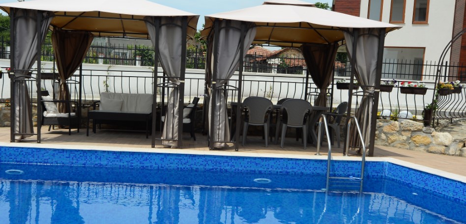 Предлагаме: Тишина, басейн с кристално чиста вода, който е с подводно осветление. Около басейна има шезлонги, шатри с маси за почивка. Може да се организира чествания на рожденни дни или просто парти за което е осигурено подходящо музикално оформление.