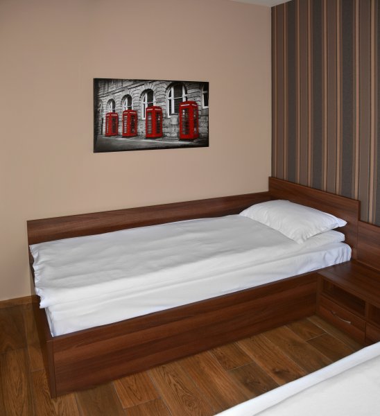 Хотелът разполага с 61 места, разпределени в 10 спални, 11 двойни стаи и 3 студиa. Всички помещения са оборудвани с телевизор, WI-FI, парно отопление, самостоятелен санитарен възел.
