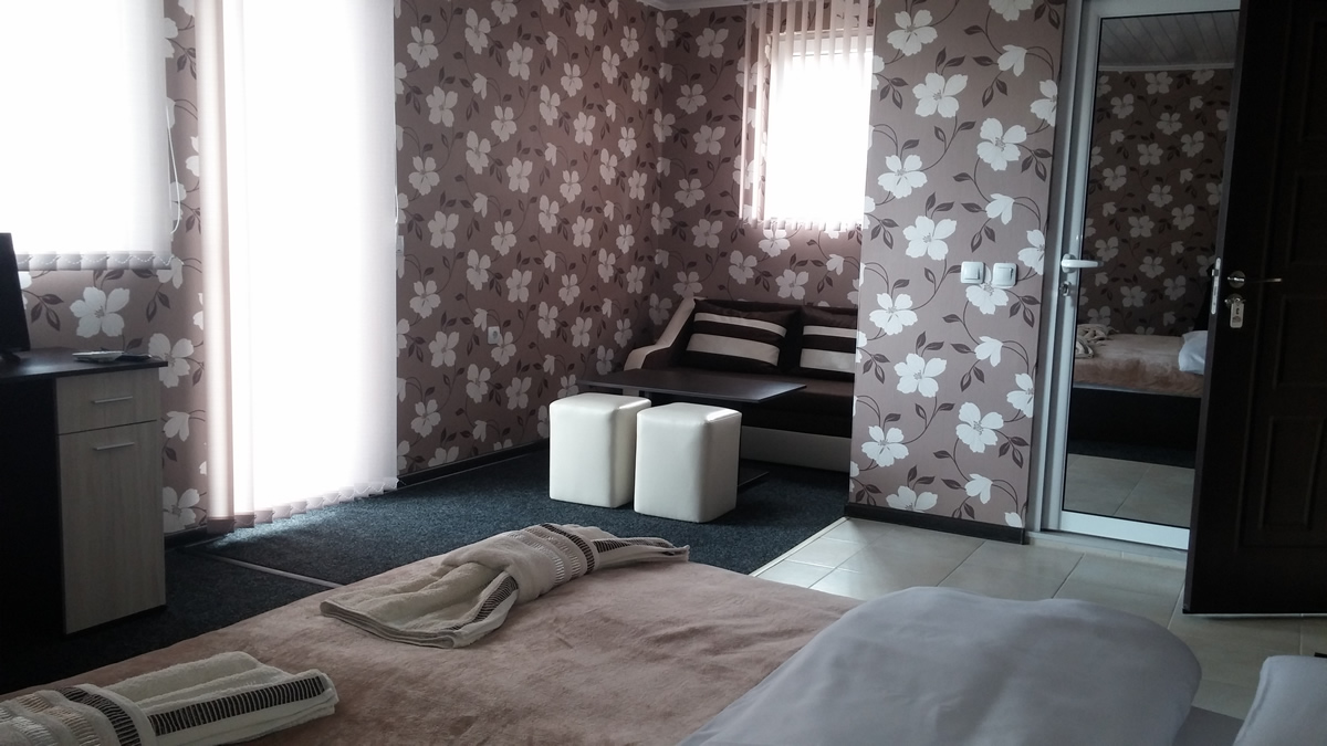 Къща Теди се намира на тихо място, но много близо до центъра на Сапарева баня! Разполага с 6 стаи разположени на 3 етажа. Общият капацитет е 18 легла. Всяка стая разполага със собствен санитарен възел, климатик, телевизор, хладилник и безжичен интернет. В двора има барбекю и външни маси, които гарантират ... Виж повечеКъща Теди се намира на тихо място, но много близо до центъра на Сапарева баня! Разполага с 6 стаи разположени на 3 етажа. Общият капацитет е 18 легла. Всяка стая разполага със собствен санитарен възел, климатик, телевизор, хладилник и безжичен интернет.