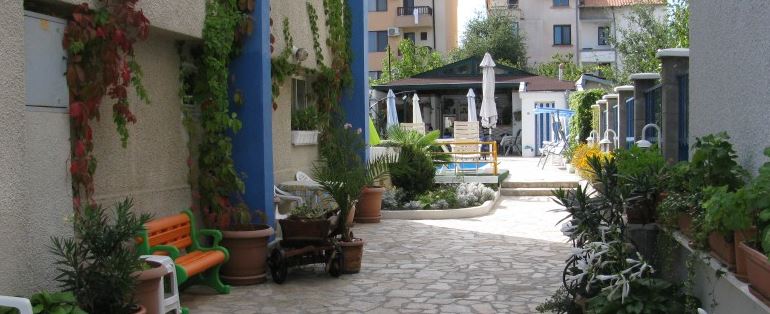 Вилата предлага едно студио с кухня, 5 двойни, 3 тройни и 1 единична стаи с кабелна TV, климатик, хладилник, тераси и отделни санитарни възли. Пълно накритие на вилата и двора с безплатен WiFi интернет със скорост 5-15 Мб/сек. Обезопасен двор 400 кв.м. с много цветя, с отделни кътове и сенчест ... Виж повечеВилата предлага едно студио с кухня, 5 двойни, 3 тройни и 1 единична стаи с кабелна TV, климатик, хладилник, тераси и отделни санитарни възли. Пълно накритие на вилата и двора с безплатен WiFi интернет със скорост 5-15 Мб/сек. Обезопасен двор 400 кв.м. с много цветя, с отделни кътове и сенчест бар. Предлагаме кафе и разхладителни напитки, както и закуска по заявка. Басейн 8х4 м. с дълбочина 1.50м и детска част с диаметър 2м и дълбочина 0.5 и 1.0м. Ползването на шезлонги, чадъри, плувни пояси, дюшеци, топки и др. към басейна е безплатно. След предварително договаряне приемаме домашни любимци до 8 кг на цена 5 лв на ден. Паркирането е осигурено на улицата до хотела за всички гости. Активен сезон от 15 май до 25 септември. Цялата вила може да се наема и извън сезона.